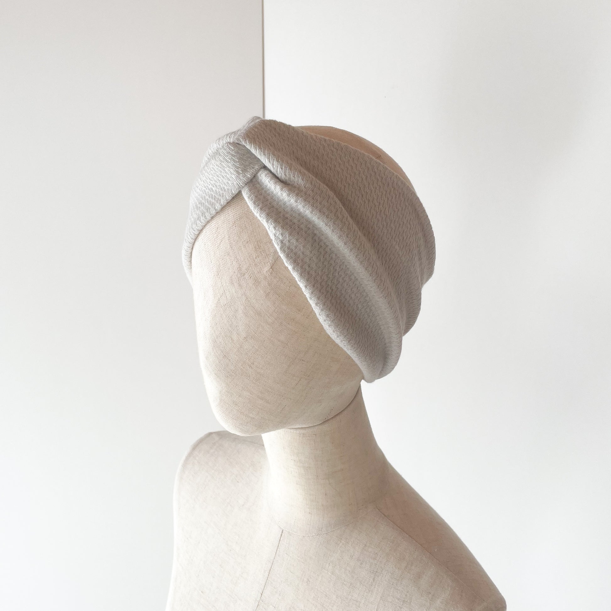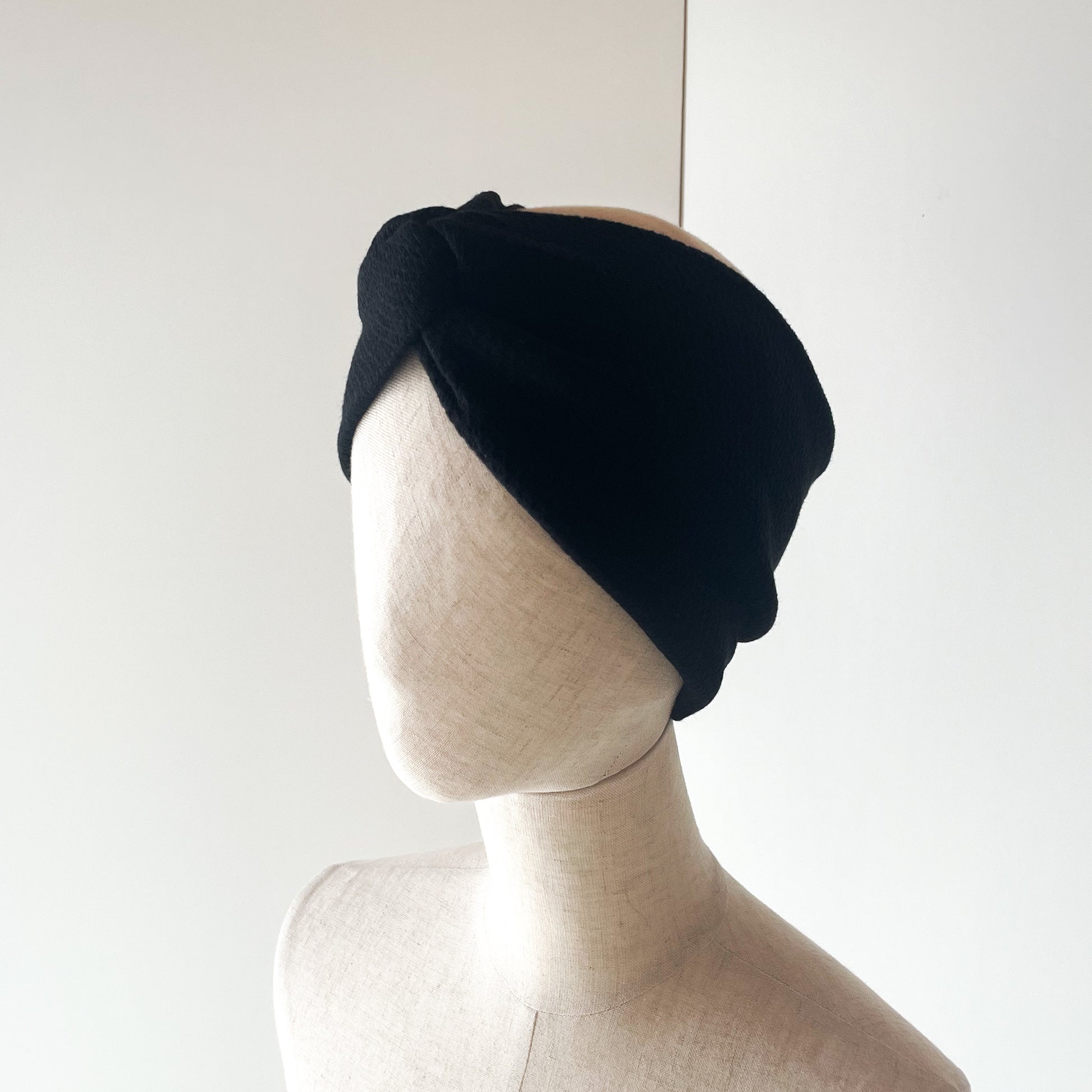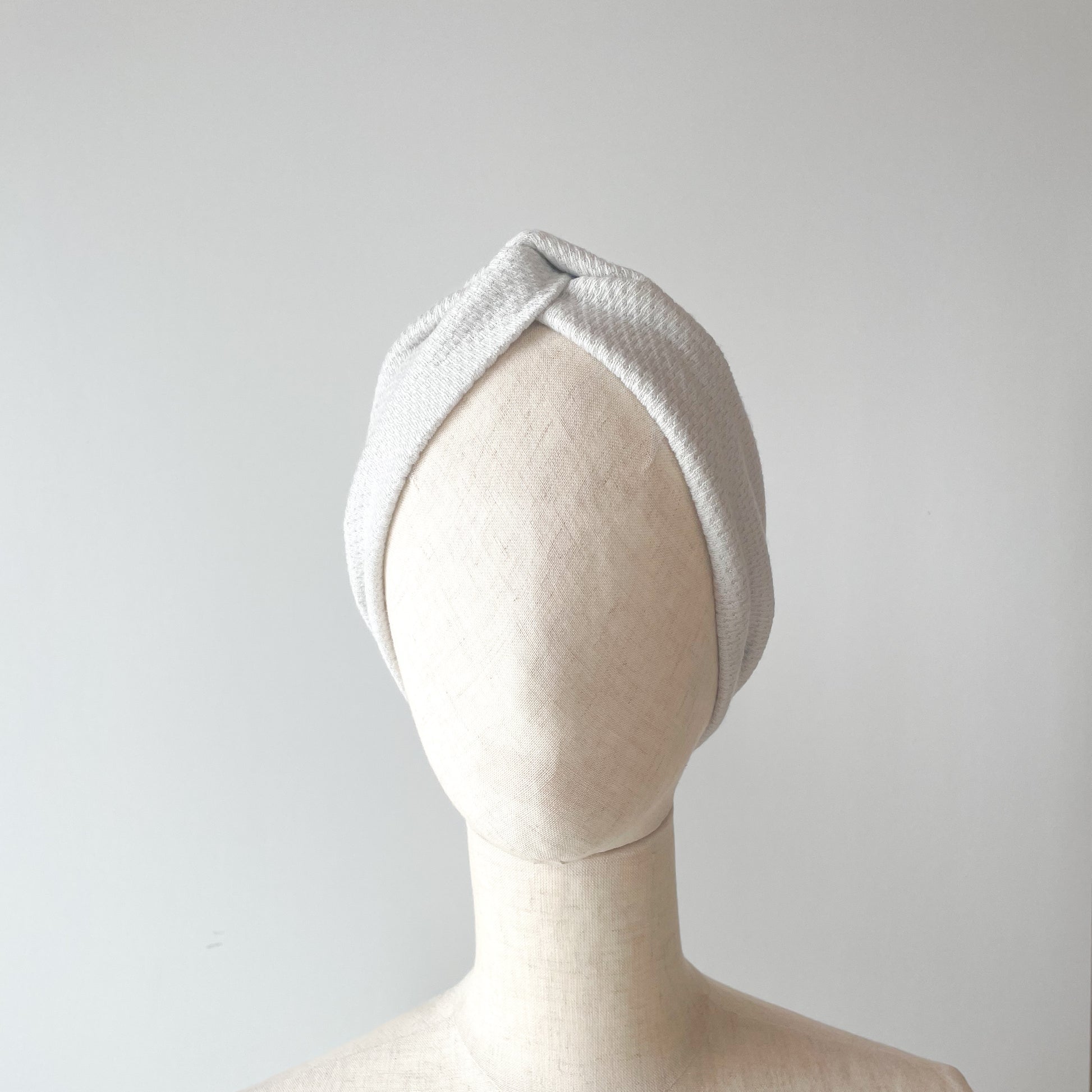 立体感のあるねじりデザインは、ラフに着けてもニュアンスが生まれる絶妙なボリューム感。おうち時間のリラックスコーデにはもちろん、ちょっとそこまでの外出にも使えるちょうどいい存在感です。朝の身支度やメイク時、リラックスタイムのお供にも。